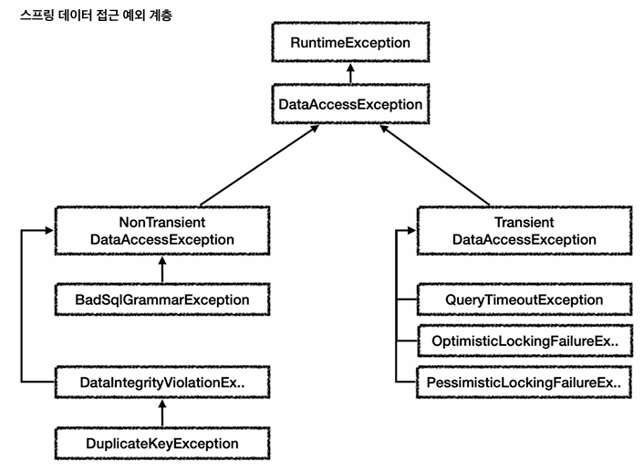 따라서 스프링이 제공하는 데이터 접근 예외를 사용하면, 별도로 DB 예외를 따로 만들어서 변환할 필요가 없다.