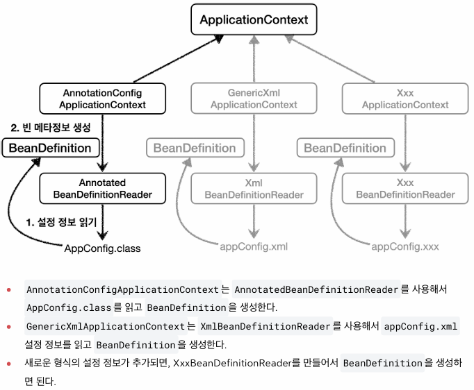 - 설정 정보의 추상화(BeanDefinition)를 통해 스프링 컨테이너가 스프링 빈을 생성.