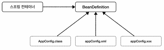 - 즉, 스프링이 다양한 설정 정보를 BeanDefinition으로 추상화해서 사용함.