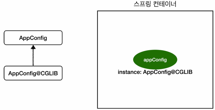 - 즉, 생성자는 한 번만 호출되는 것임. 또한 AppConfig도 스프링 빈이 됨.