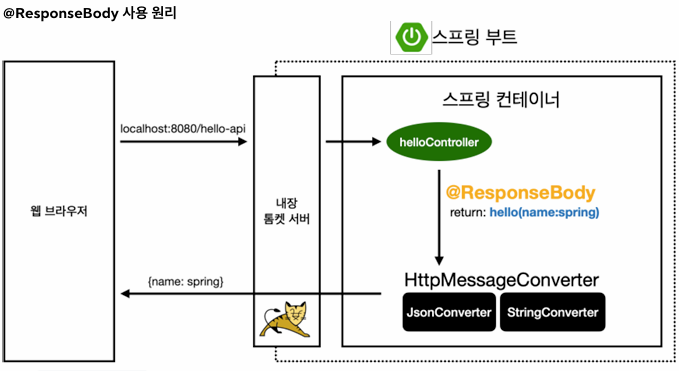 - 문자열이나 객체를 반환했을 때, 그걸 HTTP 메시지 바디에 메시지 컨버터가 적절한 형식으로 변환해서 실어주게 됨.