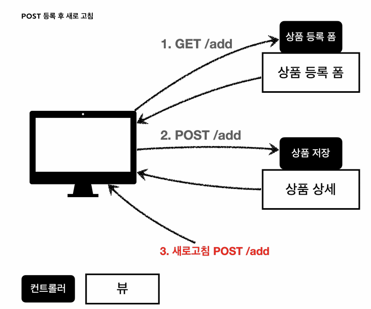 // 상품 추가 후에, 새로고침 하면 POST 요청이 계속 들어가게 되는 치명적 오류가 발생